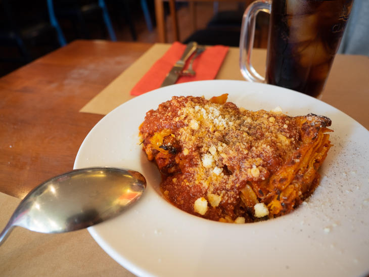 今まで食べたラザニアの印象とは異なり、軽やかな口当たりです。