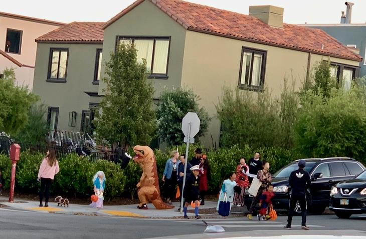 可愛い仮装は大人たちうけるが、自分の身長の倍くらいの大きさの恐竜に着ぐるみは、「あの恐竜の後ろについて行こう!!」他の子達の先導役となる。 しかし、自分の背より高いから何かに引っかかったり転んでしまっても一人で起き上がれずくっついてきた子供に助けらてたりと大変な思いでお菓子もらってた。