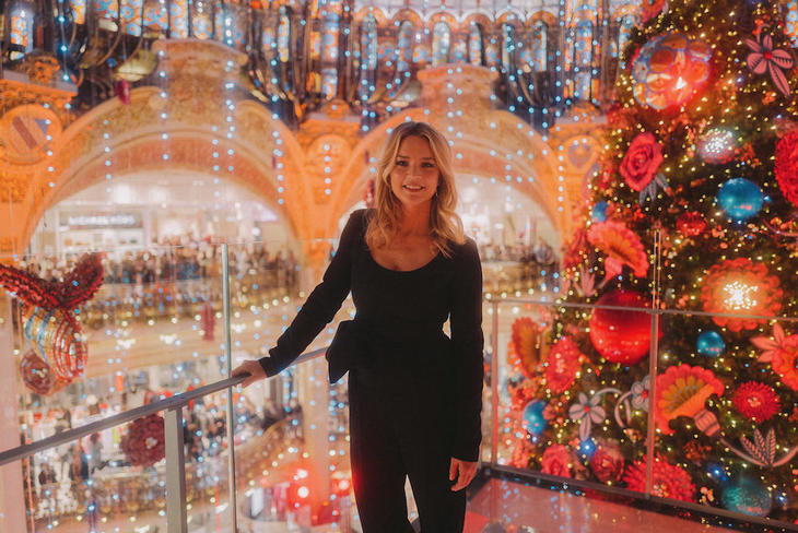 ▲ツリーと一緒に映るヴィルジニー・エフィラさん