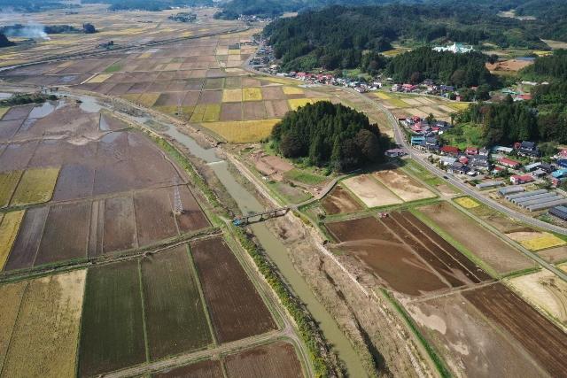 パッと見こそパッチワークの如き稲刈りの進んだ田園風景ですが、爪痕は小さくないようで…