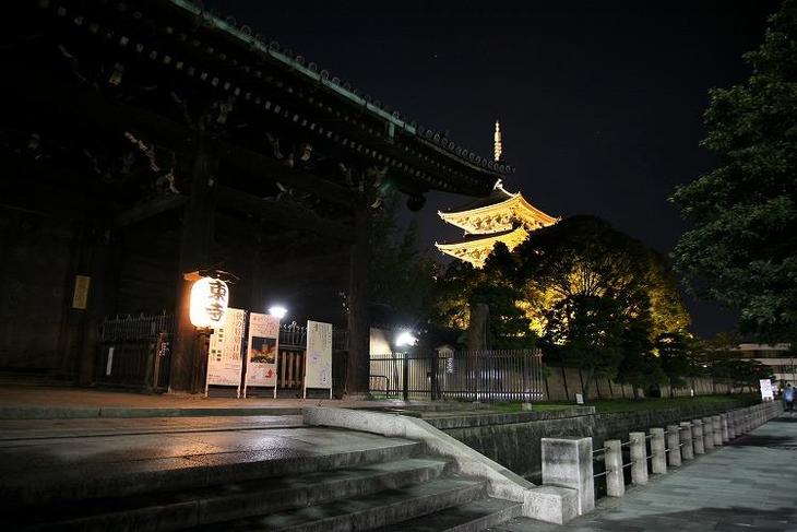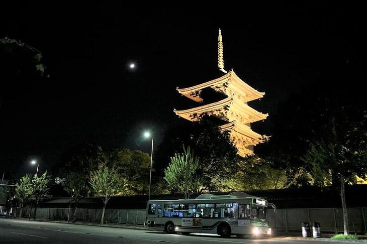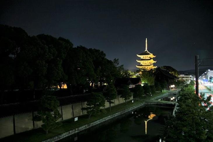 東寺では日が沈むと毎日五重塔がライトアップされています。