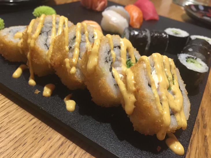 さらには、苦手なナマモノをクリアすべく、焼いたり、揚げたりした模様。他店で「寿司ピザ」なるものを食べたこともあるので、おそらくナマモノを攻略すべく、かなり研究してくれた模様。