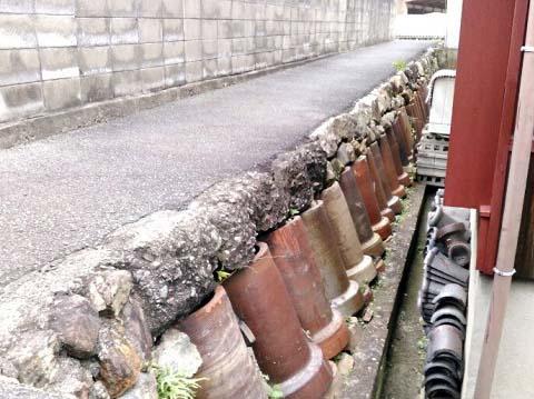 この辺りは観光地ではありませんが、ひなびた小道を歩けば、古い備前焼を利用した擁壁や基礎などを見ることができます。