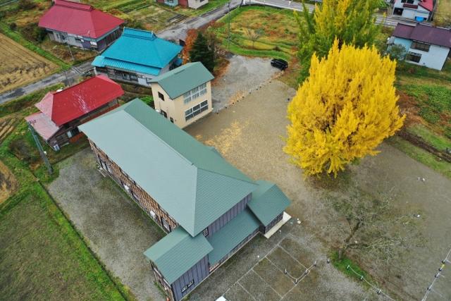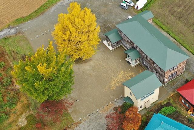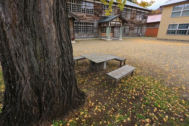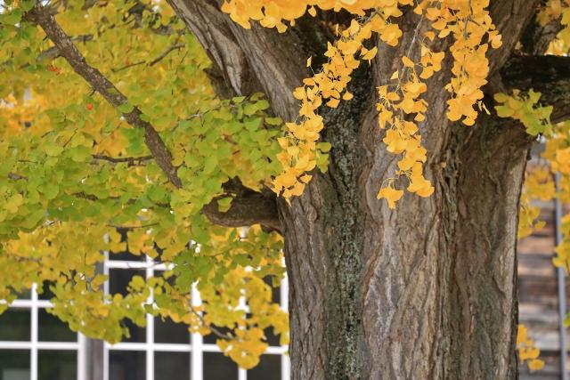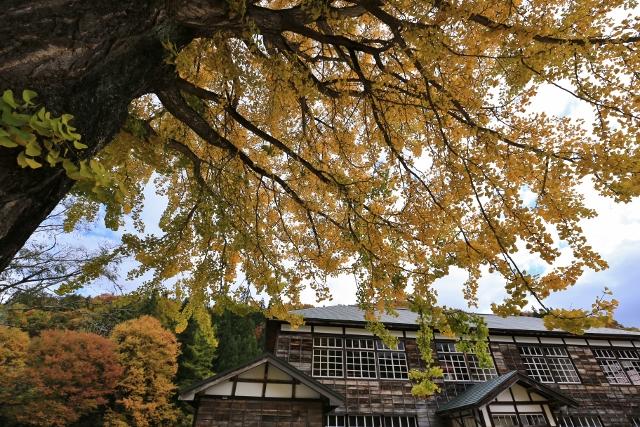ノスタルジックな建物と大銀杏のコラボが美しいスポットです。