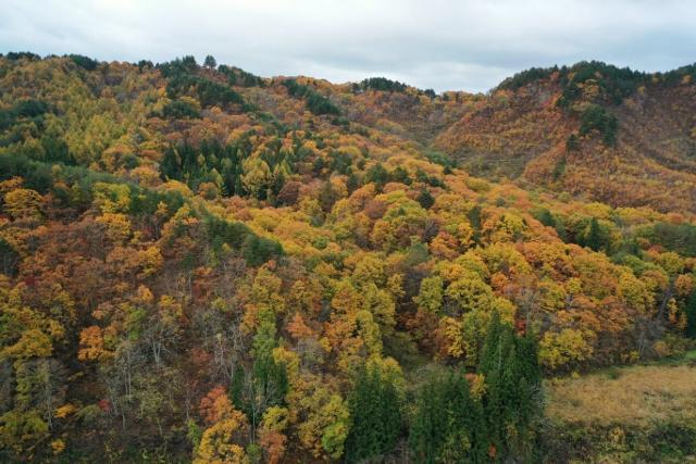 南側に広がる里山も紅葉の見頃を迎えていました。