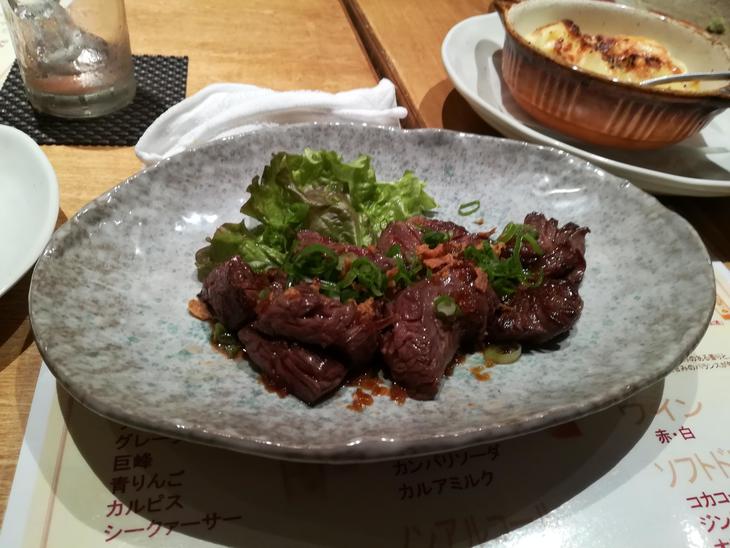 こちらは肉料理!牛肉が柔らかくてガーリックがトッピングされていて絶品!