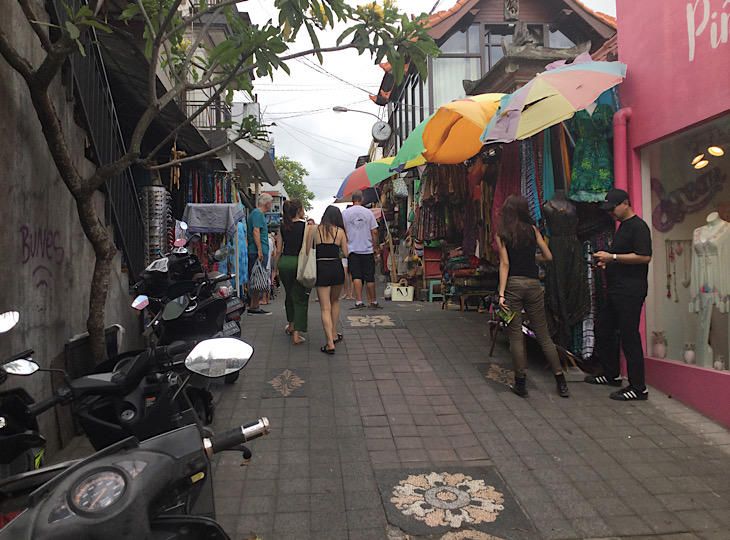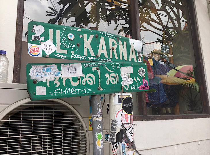 この通りは、ウブド市場裏手から「Dewi sita 通り」に続く抜け道で、Jalan Karna です。Dewi sita 通りを歩くと看板があります。昼間は、お土産屋さんがひしめいています。街の中心にある為、散歩の途中に立ち寄ってみて下さい。