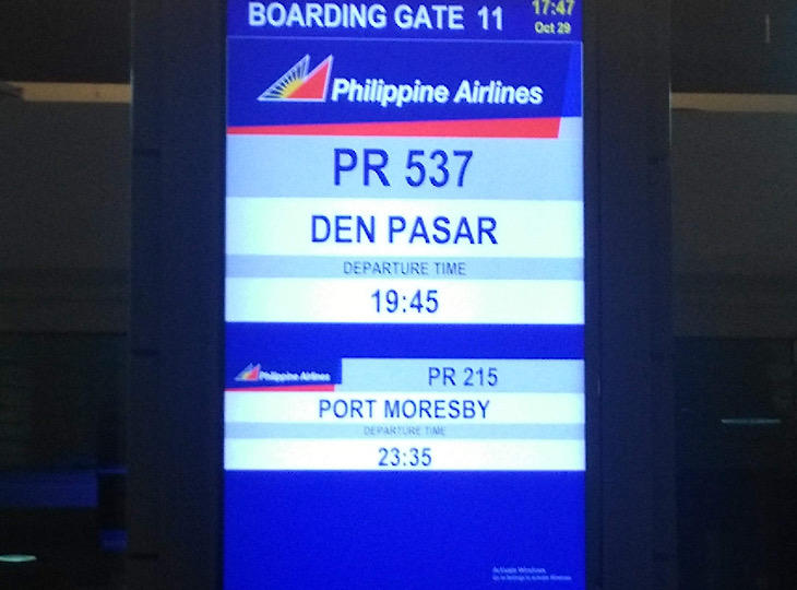 マニラ発(PR537)19:45→ デンパサール着00:00