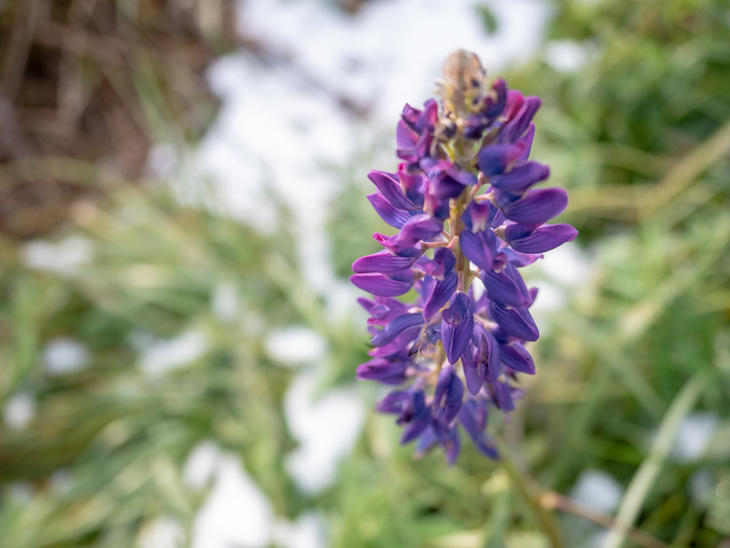 "Lupinus on the snow in Kimobetsu"