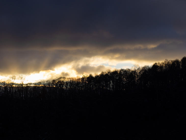 山間ともなると、まだ午後4時にもなっていませんが、光はすでに夕日色。