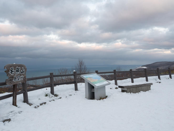 ようやくたどり着いた「毛無山展望所」(けなしとうげ)は、一面の雪でした。