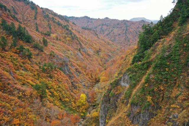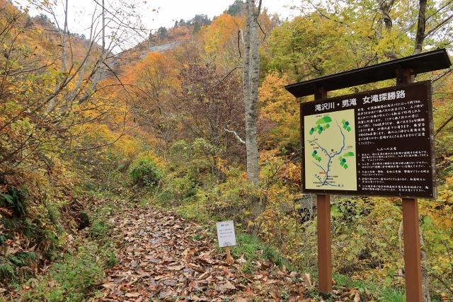 素晴らしい紅葉に囲まれつつ探勝路を進みます。