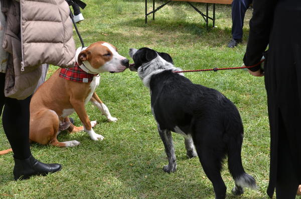 食べ物店が多く並ぶヴィーガンフェスタなのですが、会場には犬を連れた人がたくさんいます。ヴィーガンには動物好きが多いようです。
