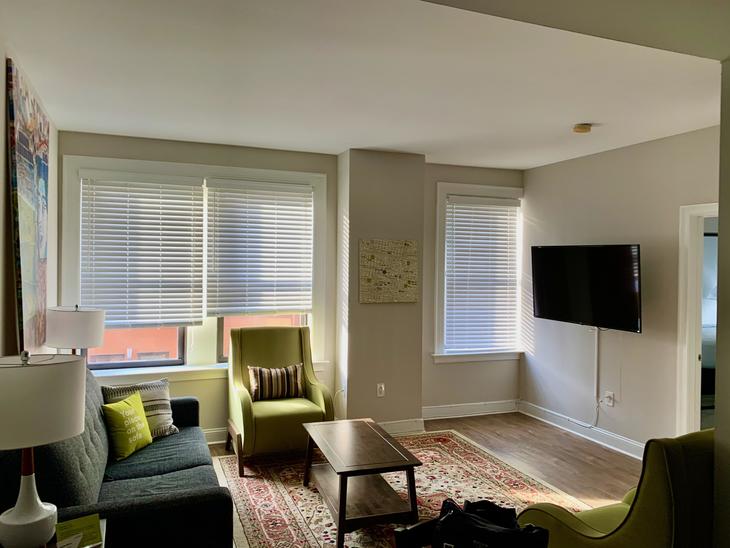 ホテルの場合は、宿泊に関して以外も様々なサービスがある、ルームサービスから各種の案内も電話一本で応えてくれる、出張の場合はビジネスセンターがあったりミーティングできたりと建物内で仕事ができる。 またアパートの場合は住民気分、あたかも家に帰ってきた気分になるのはリラックス度は違うかもしれない、フィラデルフィアの住民みたい体験はできる。 ちなみに毎朝枕元に置くチップ、アパートは要らない。