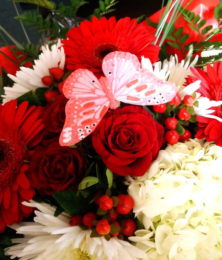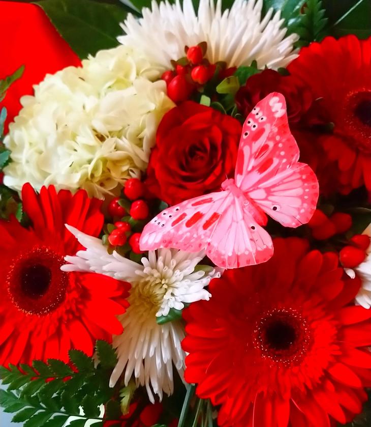 フランス人の夫からのプレゼント。アレンジメント、ファンタジーの世界みたいな蝶がポイントです。