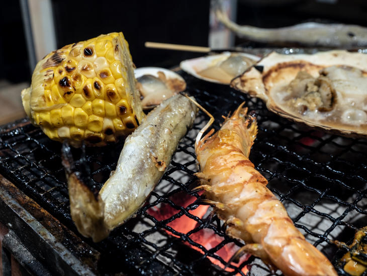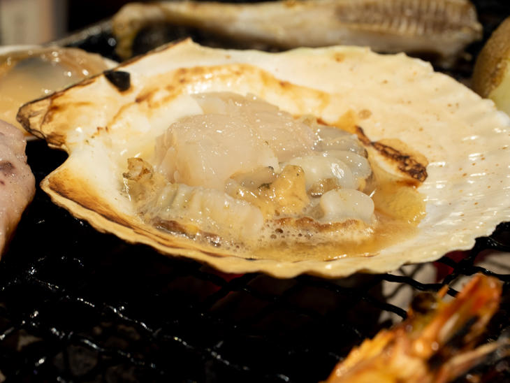 北海道産海鮮を炭火で焼いていただく「七輪焼き」。