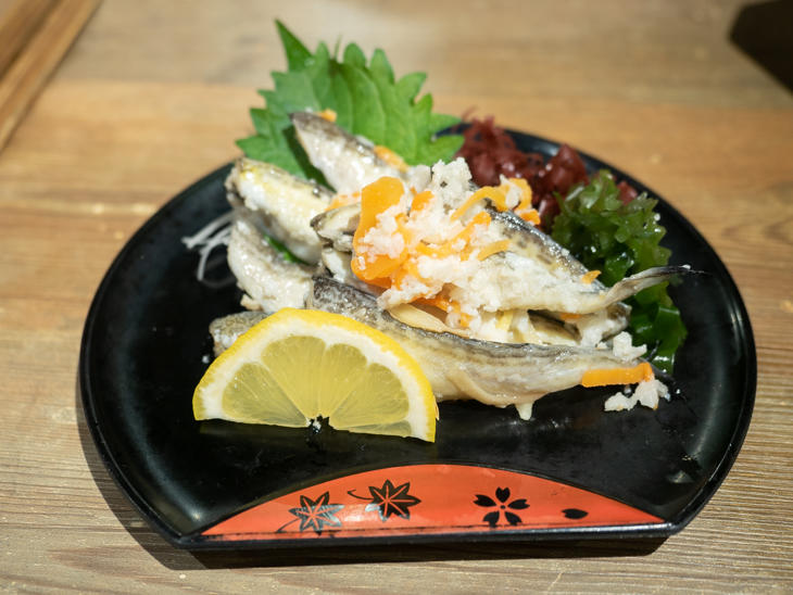 メイン料理の前にいただいた「ハタハタ飯寿司(いずし)」(680円)。