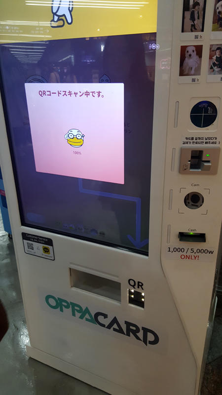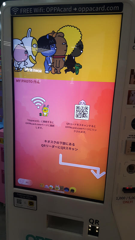 携帯で使用する写真を選択した後、そのQRコードを機械の右下にあるQRリーダーにスキャンします。
