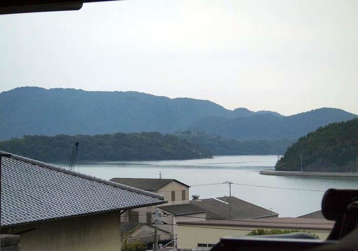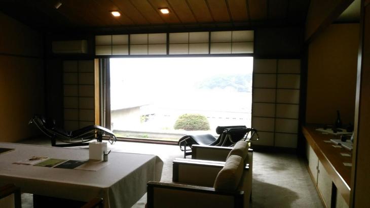 あいにくの空模様ですが、窓からは片上湾が見下ろせます。