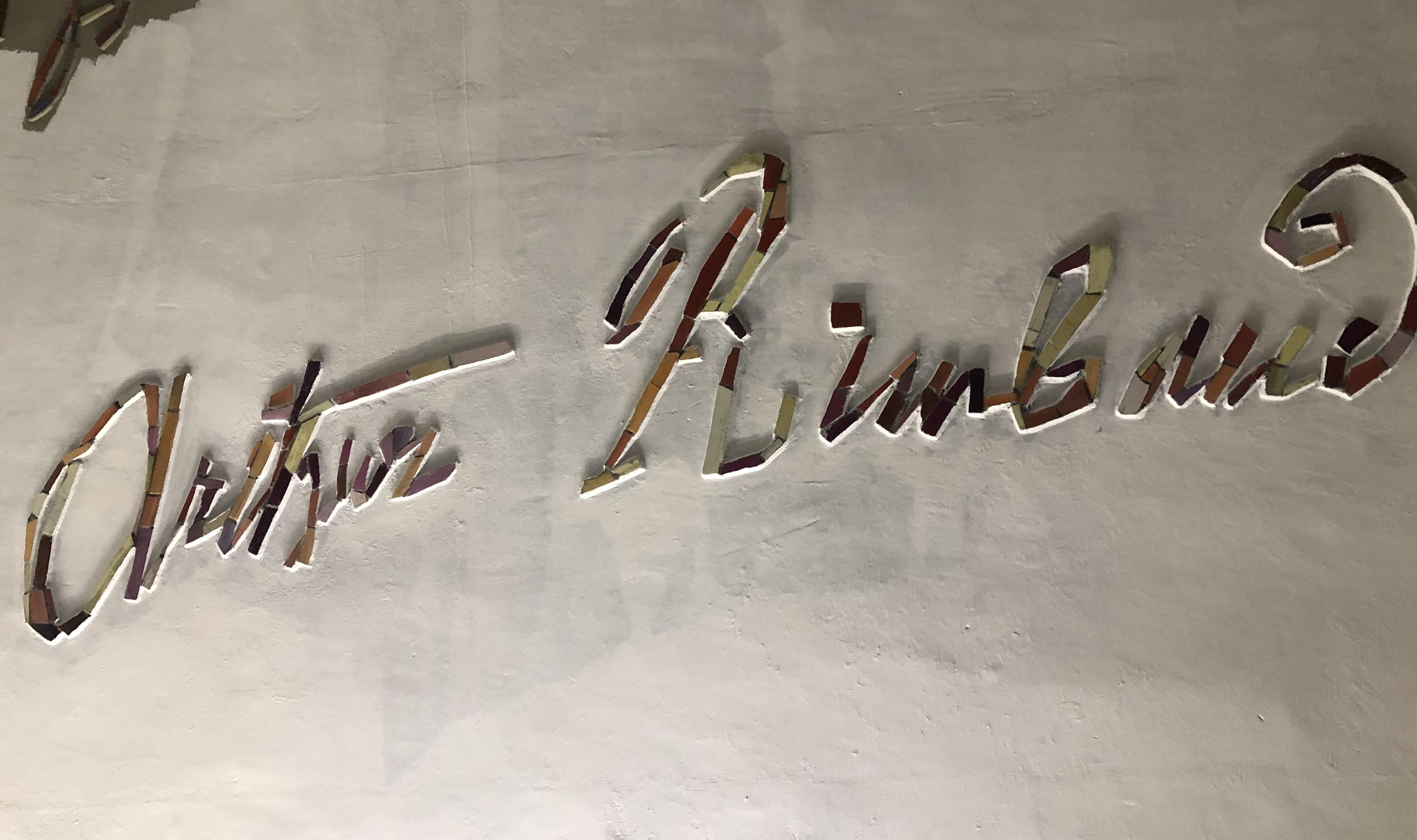 天井に無数に描かれたサイン。これは芸術家ジーン・バゼンによって作成された、作家、詩人、哲学者、研究者、王の名前なのです。本人の署名をモザイクで忠実に再現しています。
