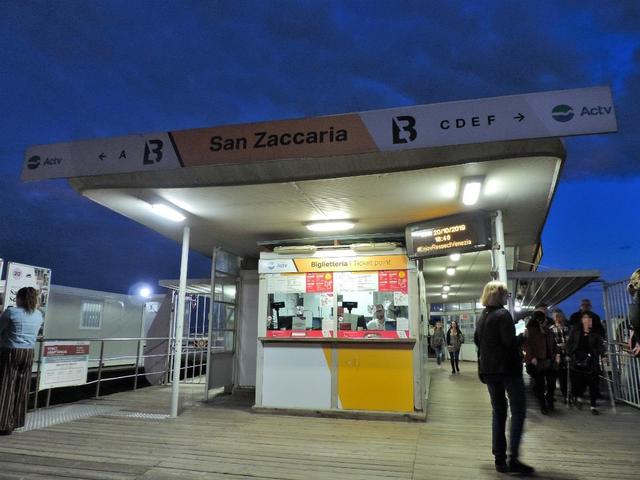 ↑ 行き方はとても簡単です。ヴェネツィアで最も有名な観光スポット、サン・マルコ広場近くにあるヴァポレット乗り場、サン・ザッカリーア(San Zaccaria)からこの素敵な乗り物、すいすい進む水上バスのヴァポレットに乗ります。窓口でサン・ジョルジョ・マッジョーレ行きと告げ、切符を購入します。ヴァポレットの切符は、普通に1回券(一人一枚7.5ユーロ)でご利用の場合、ここで帰りの分も購入しておくと安心です。