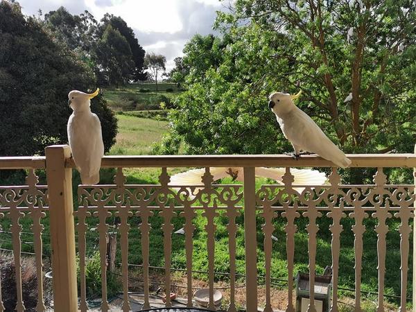 ↓2階のベランダには鳥たちが餌を求めてやってきます、B&Bのオーナーさんが餌も用意してくれています↓
