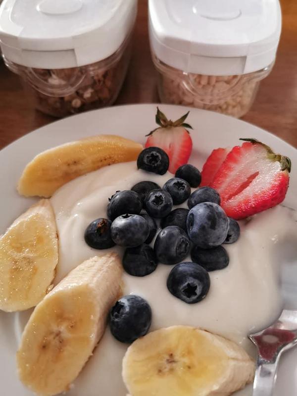 冷蔵庫には、卵やヨーグルトそして盛りだくさんのフルーツ。パンやシリアルなどいろいろと用意されているので自分の好みの朝食を取ることができます