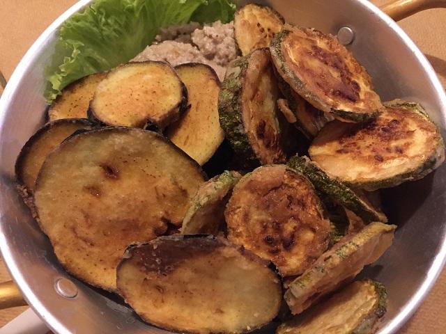 やがてアツアツの前菜が登場~~。それはズッキーニと茄子の素揚げ!