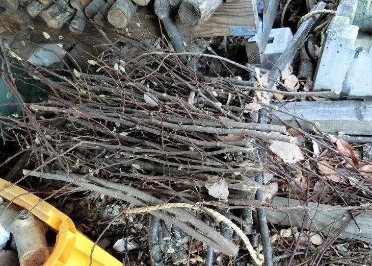 焚きつけの小枝も必要です。これは猫柳を剪定するというご近所の方にいただいた枝。この猫柳、ストーブに入れる前に手で折るんですが、そのときハーブのように香るんです。そんなことも、薪ストーブの暮らしの楽しみのひとつです。