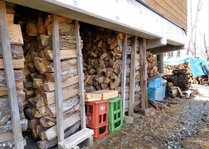 我が家は傾斜地なので北側の軒下も、すべて薪置き場になっています。
