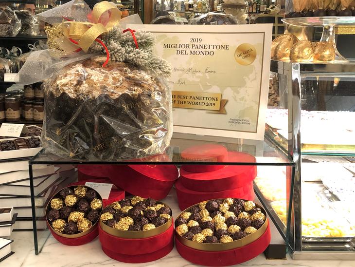 そのうちのひとつ。ローマで開催された世界一のパネットーネを競う大会で、トリノの老舗カフェが金賞のうちの一店に選ばれた(カテゴリーごとに金賞、銀賞、銅賞があり、各賞数店ずつ選ばれる)。