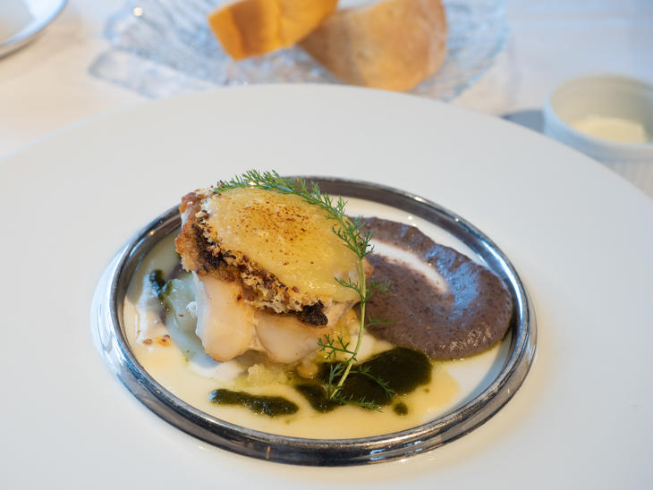 チーズと数種のハーブやスパイスを合わせ、フレンチならではのソースを楽しめる魚料理です。