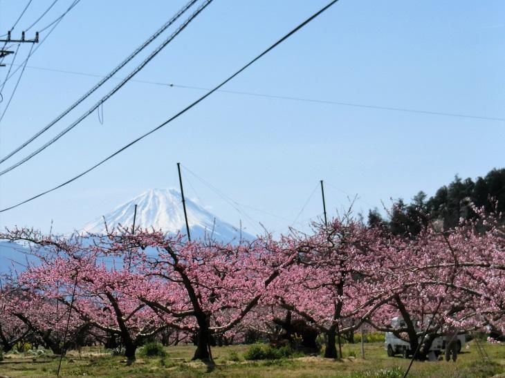 桃の季節の写真もあります。韮崎市新府の辺りから見えた富士山。
