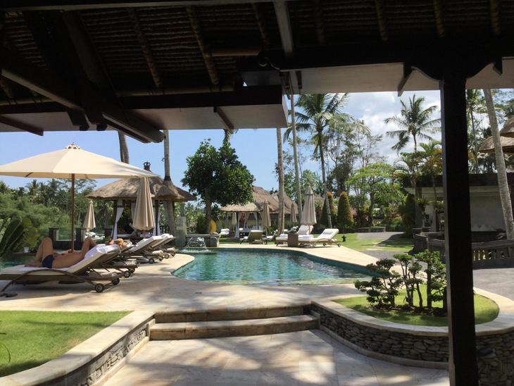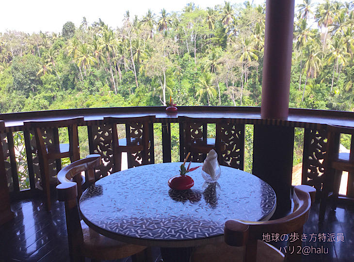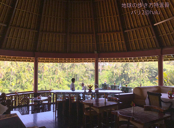 カスケードは、手前がバーラウンジ、奥がレストランになります。椰子の木が美しく連なるジャングルビュー。その谷底の川から吹き上がる風が実に爽やかで気持ちが良いです。気温は30度は超え高いはずですが、日陰にいると涼しく感じます。プールの後にレストラン、バー共に利用が可能です。
