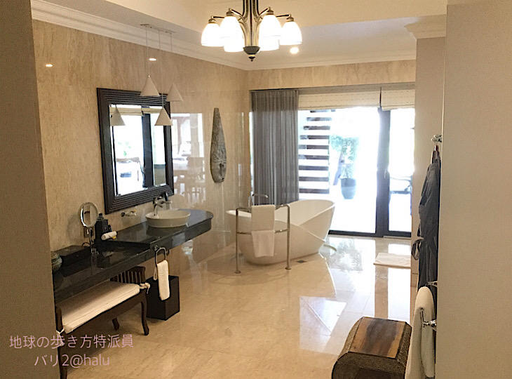 ソフトオープン中の新しいビラも、バスルームは寝室と繋がり外の景色も見える開放的な造りです。