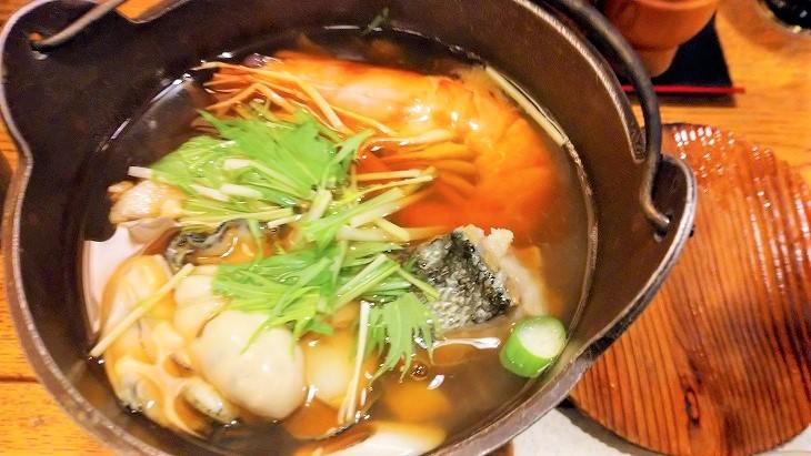 牡蠣と大きなエビが入っています。日本酒を飲むには最高です。