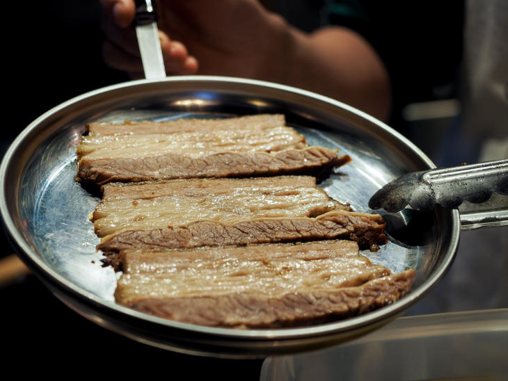 自家製だからこそできるホットで厚いパストラミの味わい。