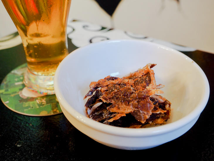 もう一品、この日いただいたビールのお供は、「自家製スパイスジャーキー」(500円)。