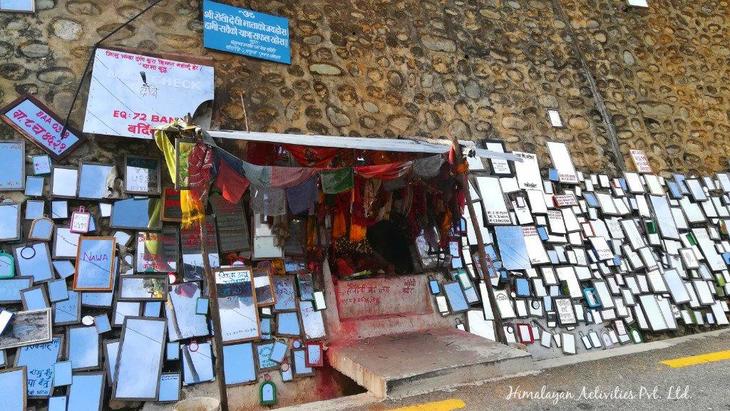 かつてこの場所で崖下転落事故が多発したことを受け、セティデビ女神を祀り、鏡を寄進することで事故がなくなったとのこと。儀式や祠の設置には、当時道路を建設していた日本の会社もかかわっているそうです。