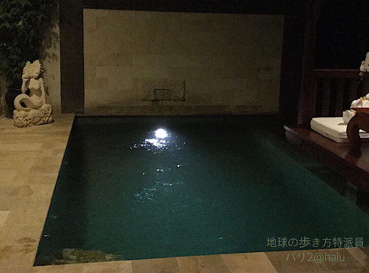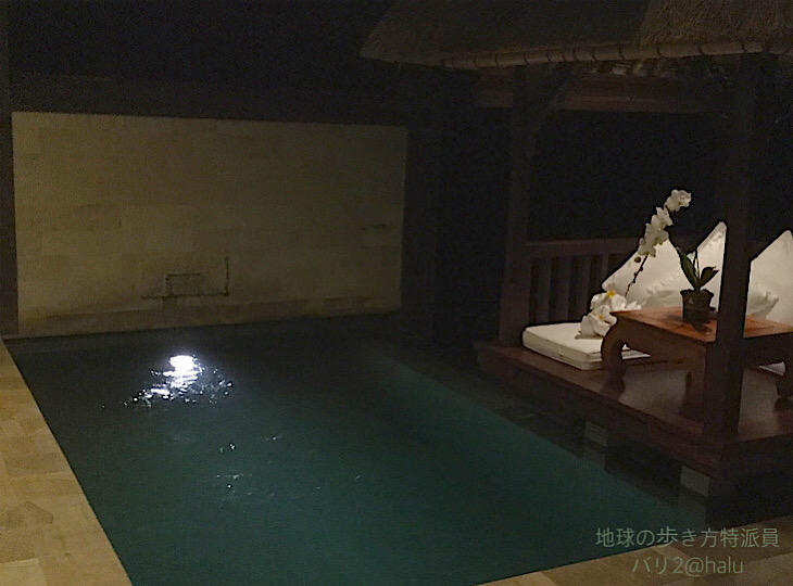 プール内に設置されている照明の柔らかい灯りで、雰囲気は昼間とガラッと変わり、とてもロマンチックです。