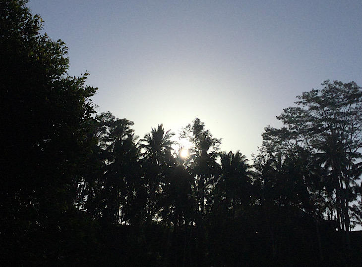 次の日の早朝のジャングルビュー。朝日が樹々の隙間から見えてきました。