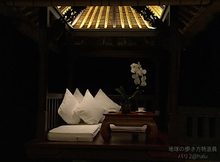月夜の静かなひと時です。部屋に戻ると、ゲストへのメッセージカードと一緒に飾ってあったTuberoseの香りが部屋いっぱいに。幸福感に包まれます。最初にドアを開けて感じたあの香りの正体は、夜になるとさらに香りが増す香水の原材料にも使われているTuberose、夜来香、チューべローズ。私も大好きな香りです。
