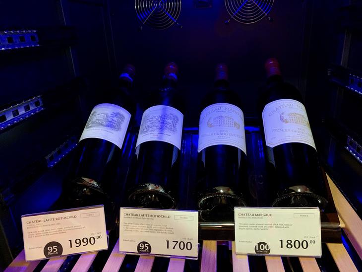 ワインの種類がすごく多くて、棚には高級ワインが並んでた。