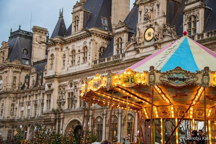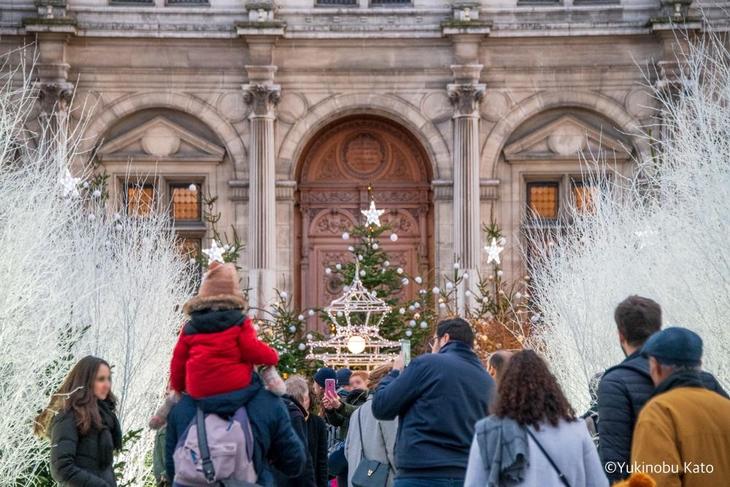▲パリ市庁舎前の広場に設けられたクリスマス装飾