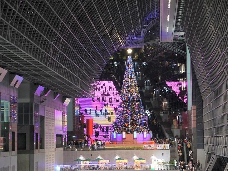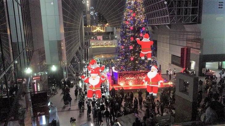 京都駅ビルでは、京都駅ビルアプリの「京都eAR」(無料)をダウンロードして大階段で写真を撮ると、サンタクロースが画面上で動いたり雪が降ったりと楽しい世界が広がりますよ。