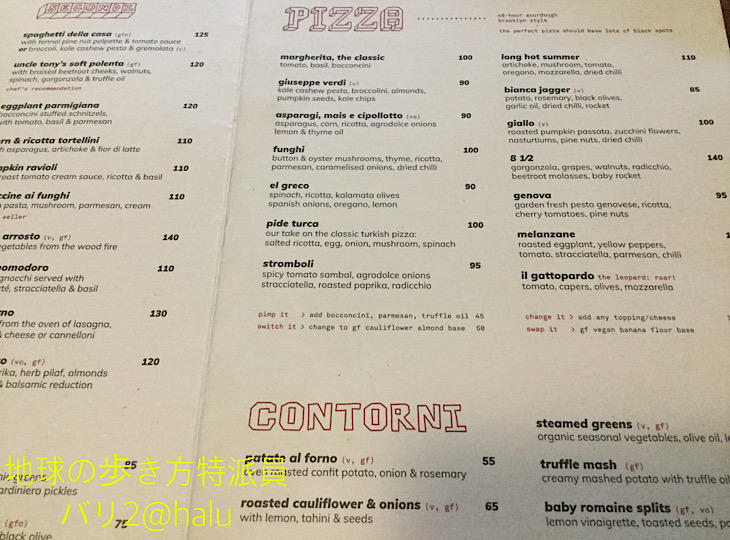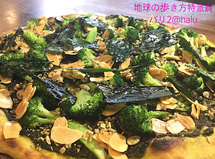 ケールやブロッコリー、アーモンド、ケールとカシューのペーストがトッピングしてあり、白ワインにとても合いおいしかったですよ。お腹ペコペコでなければ、結構大きいサイズなので! 2、3人でシェアしてもいいかもしれません。