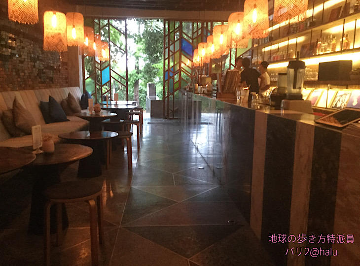 そのIbahのそばを入って下り、川沿いを抜けて行くと辿り着くインスタで有名なあの散歩道。その遊歩道を見下ろす位置に、カウンターテーブルが設置されています。
