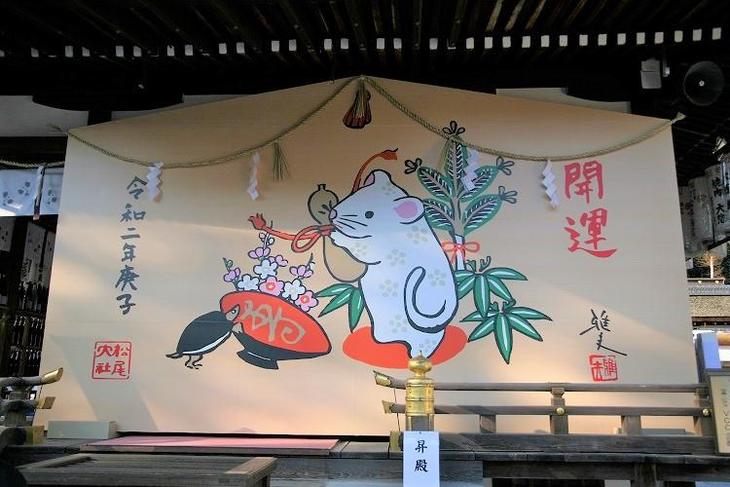 昇殿前には、今年の干支の子(ねずみ)の大絵馬が飾られています。