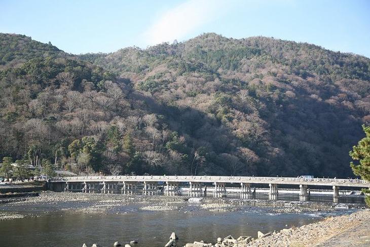 春や紅葉の時期は、多くの人が行き交う渡月橋ですが新春の今は人も少なめです。