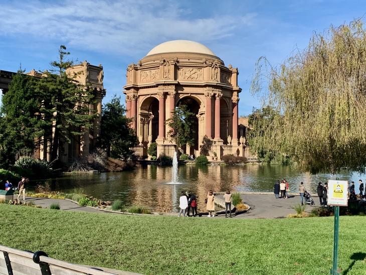 1915年パナマ太平洋記念博覧会で最も評判だったギリシャ館のパビリオン『パレス・オブ・ファインアーツ(Palace of Fine Arts)』 映画ザ・ロック(1996年作)ではショーン・コネリが娘と密かに会うシーン撮影場所だし、景色がすばらしく歴史的な背景もあるので市内観光のコースにもなってるし、市民の憩いの場にもなってる。